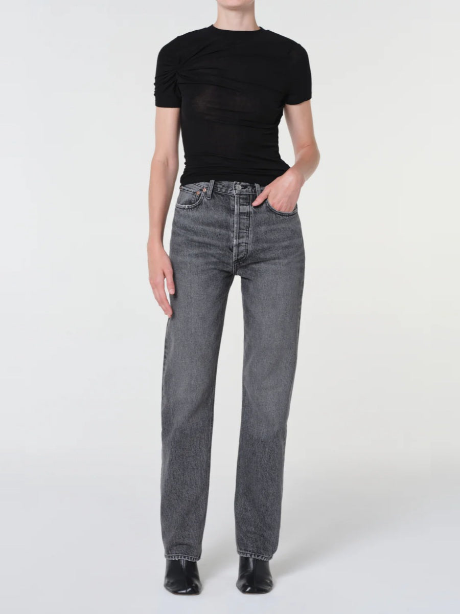 The 90s Pinch Waist Long offers vintage-inspired ease with a high rise, pinched waist, and straight leg.