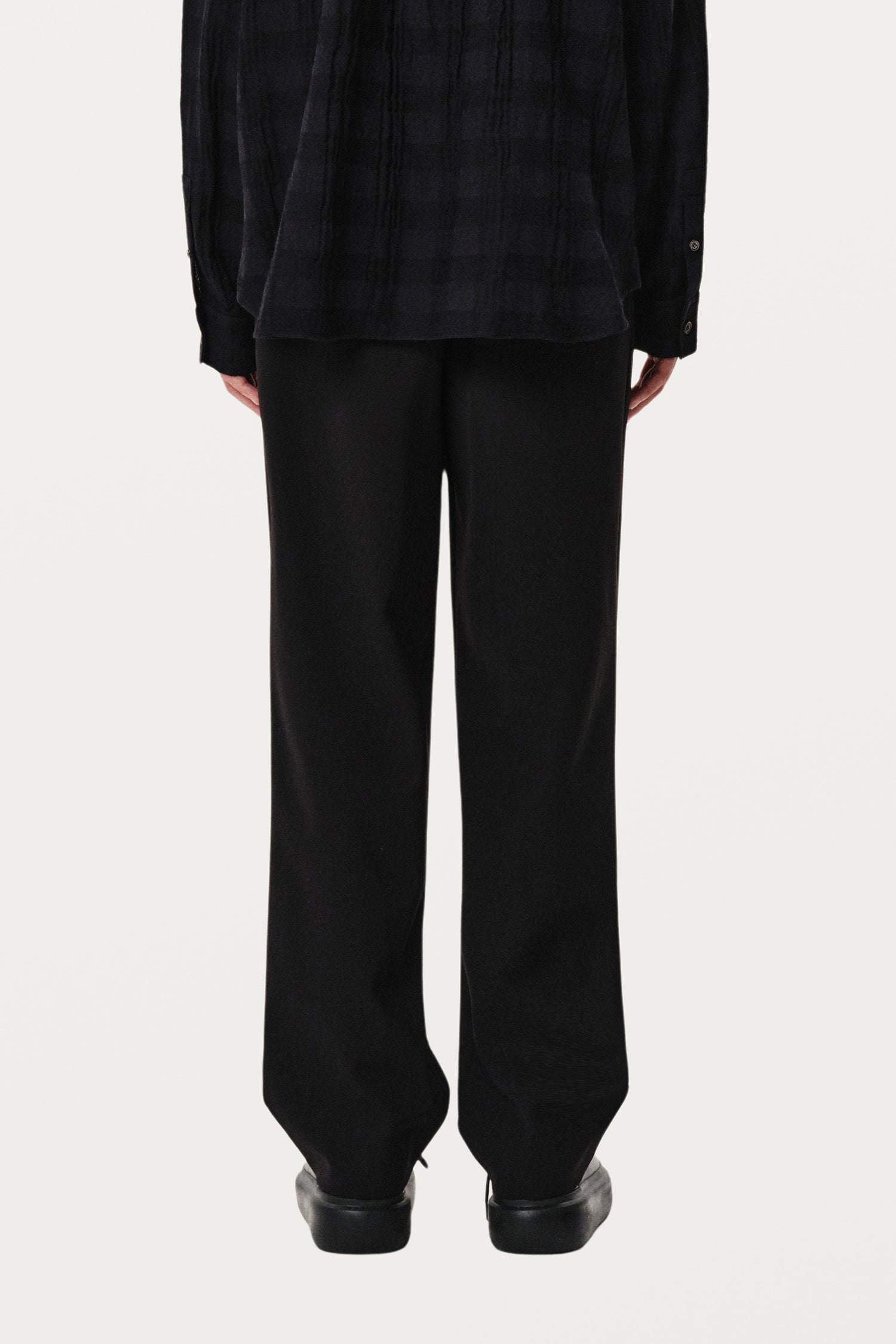 Semi-wide trousers. One chin detail. Banding details. Pocket detail