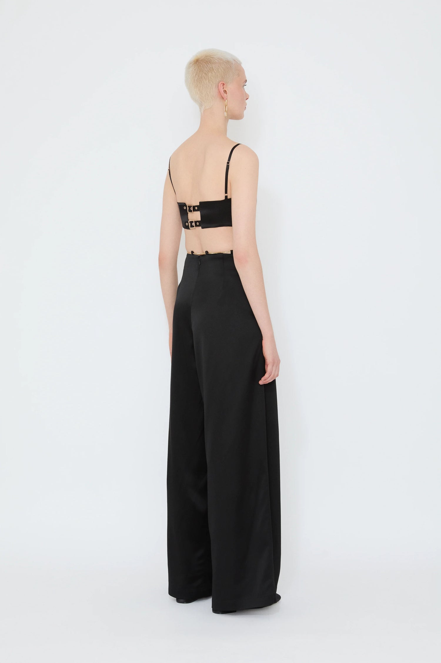 The Sandy Pants, flaired folds wide acetate pants, embody modern elegance with structured movement and a sophisticated, flowing silhouette. Regular fit.